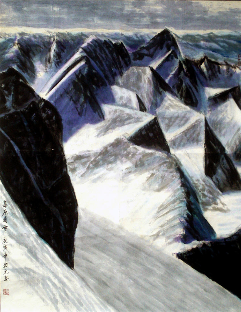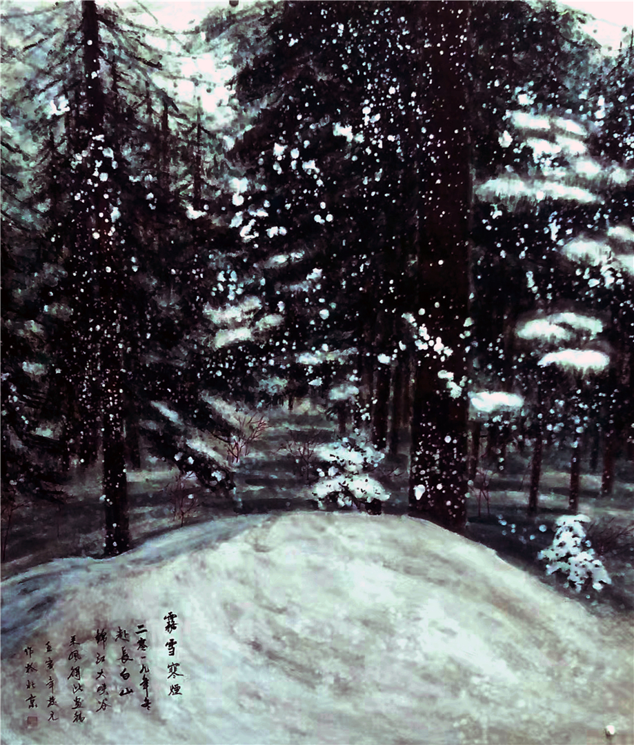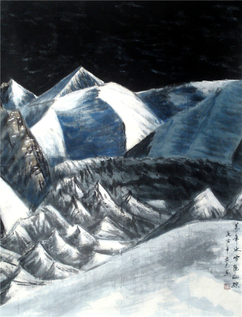 2005年开始研究能够表现雪域高原大场面的冰雪山水画技法,经过多年的努力,形成了独特的冰雪山水画绘画表现语言,定名为大冰雪。大冰雪山水画的艺术特征为场面宏大,色彩鲜艳,雅俗共赏。作品既有深厚的传统功力,又有鲜明的时代风貌。